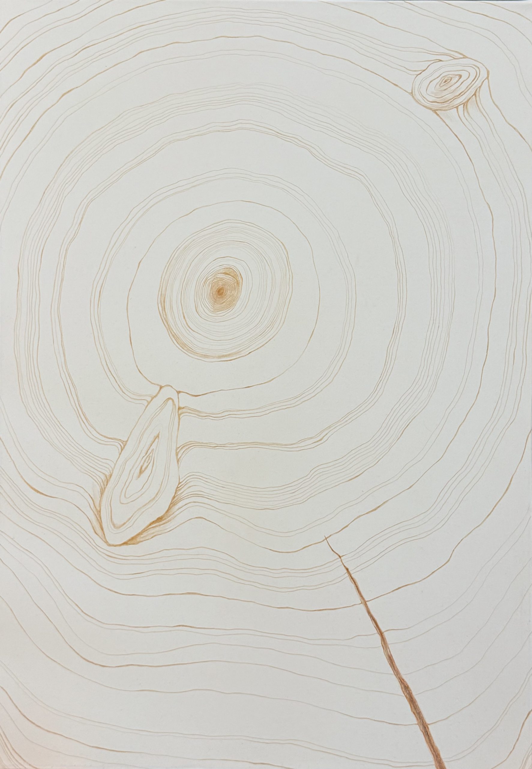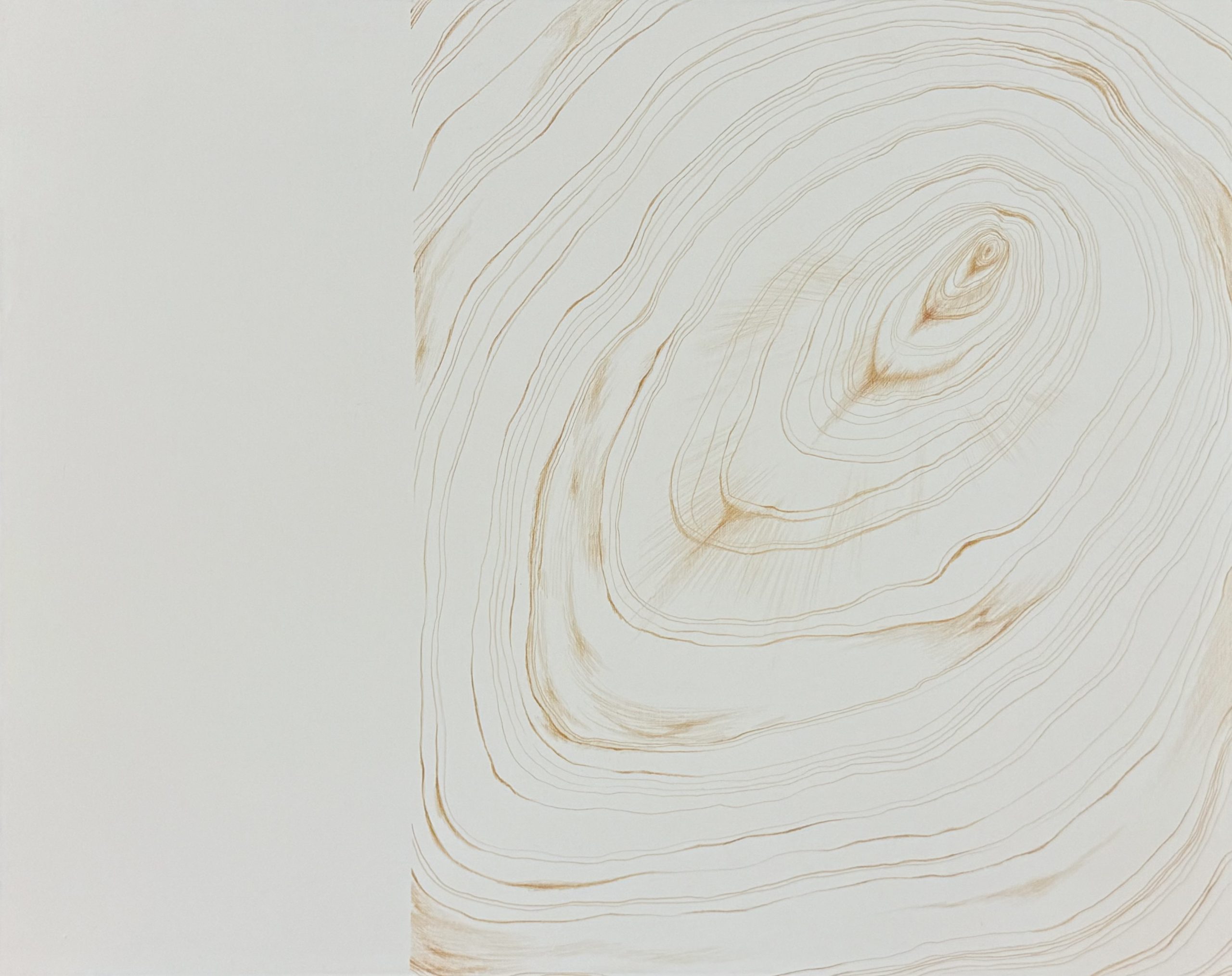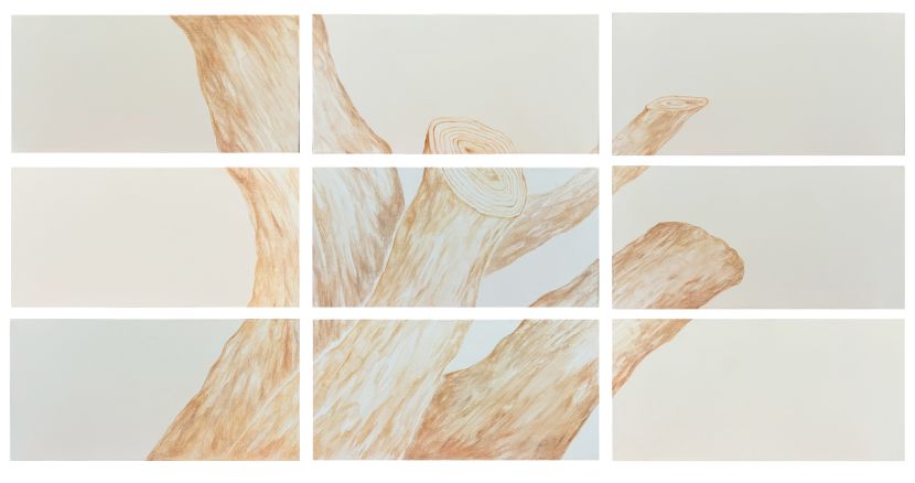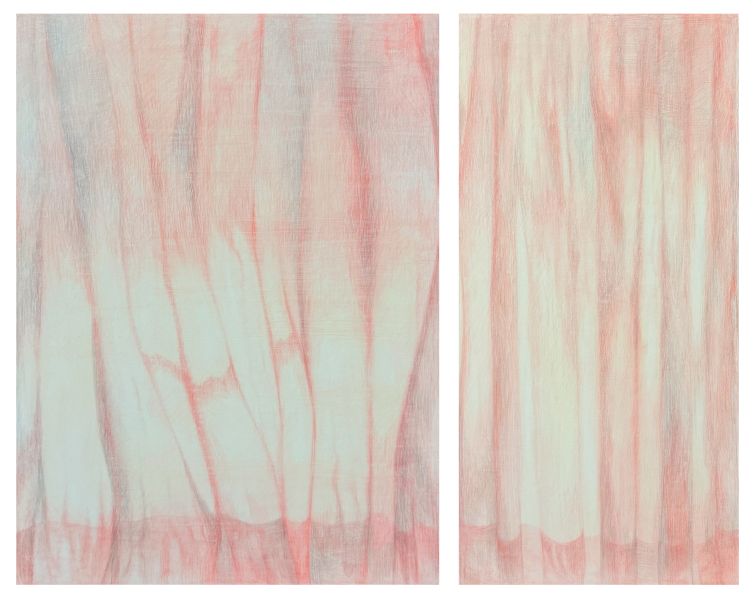 奈々近期的創作運用多元的繪畫媒材,從水彩、色鉛筆、鉛筆直至油彩,以輕薄的顏料,帶有透明度的色彩詮釋畫面。奈奈的作品以「搬家」為出發點,作品畫面中可以看到傢俱的擺放方式、位置,雖然傢俱與人之間的關係密不可分,但在畫面中「人」的部分被排除了,細查後才能發現人留下的痕跡,這也純粹是在把物體獨立出來看待,物體成為畫面主體,對觀賞者而言看到的可能不再僅是「搬家」此事件,而是更能聚焦於「傢俱」與空間之間的關係,並用清淡薄透的顏料,呈現著不論是人還是物體的「存在」與「缺席」之間的過渡地帶。