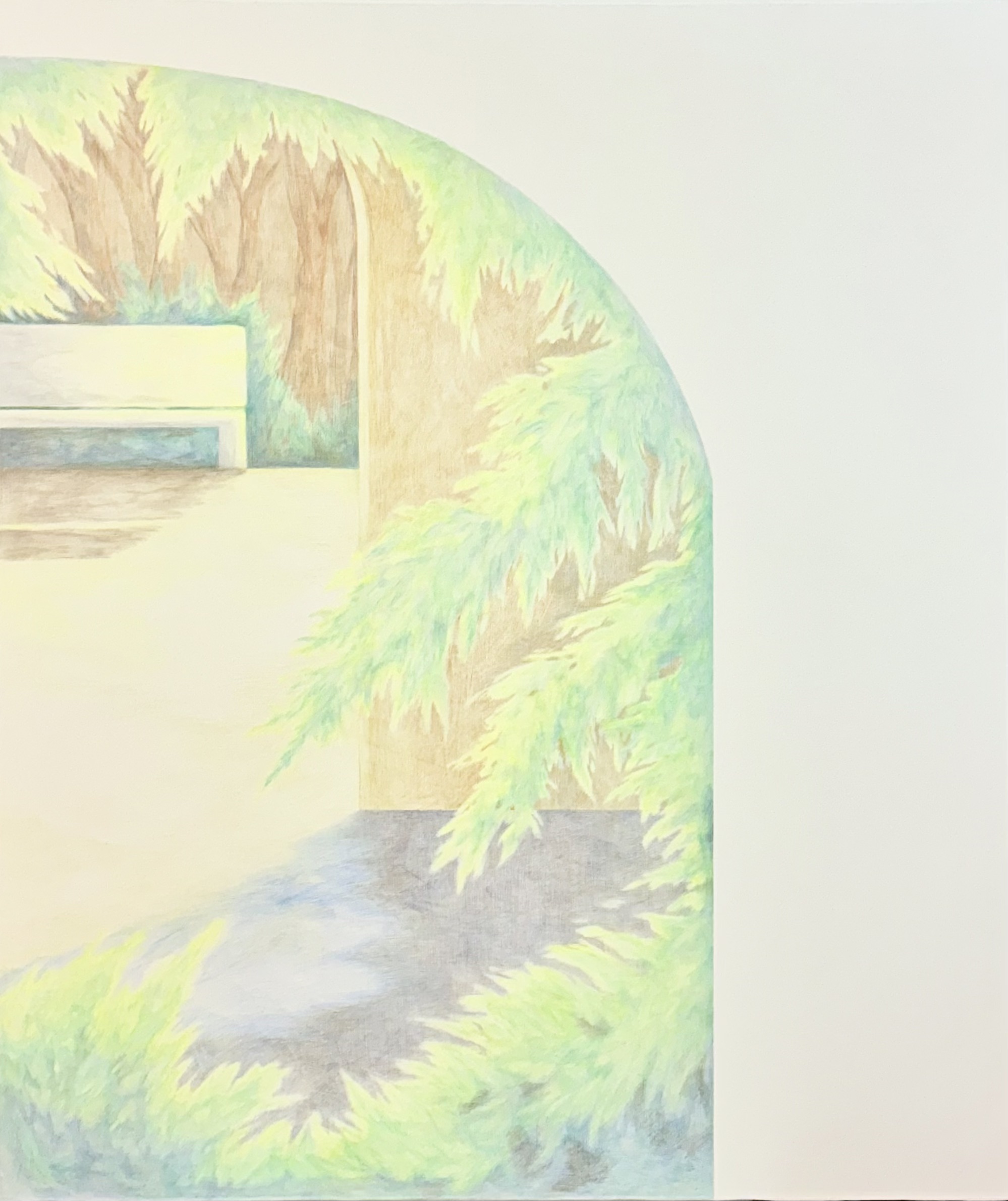 2000年台湾台北生まれ、現在台湾新北市在住。国立台北芸術大学美術学部絵画コース卒業、国立台北大学美術学部絵画コース修士在学中。奈々(Nana)の最近の創作は多様な絵画メディアを活用しており、水彩、色鉛筆、鉛筆から油彩まで、透明度のある色彩を持つ軽やかな顔料で作品を表現している。「引っ越し」を出発点とした作品では、家具の配置や位置が描かれている。家具と人の間には密接な関係があるが、画面では「人」は排除され、人の痕跡を注意深く見ないと気づかない場合もある。これは単に物体を独立して見ることを意味し、物体が画面の主体となり、観客にとって「引っ越し」というイベントだけでなく、「家具」と空間の関係により焦点を当て、軽やかで透明な色彩を使って、人や物体の「存在」と「欠席」の間の移行地帯を表現している。