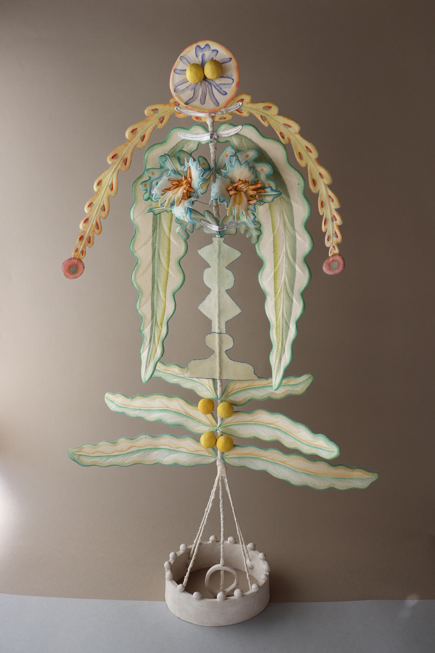 The singing stem_2024_H890×W330×D330_fabric, wire, ceramics