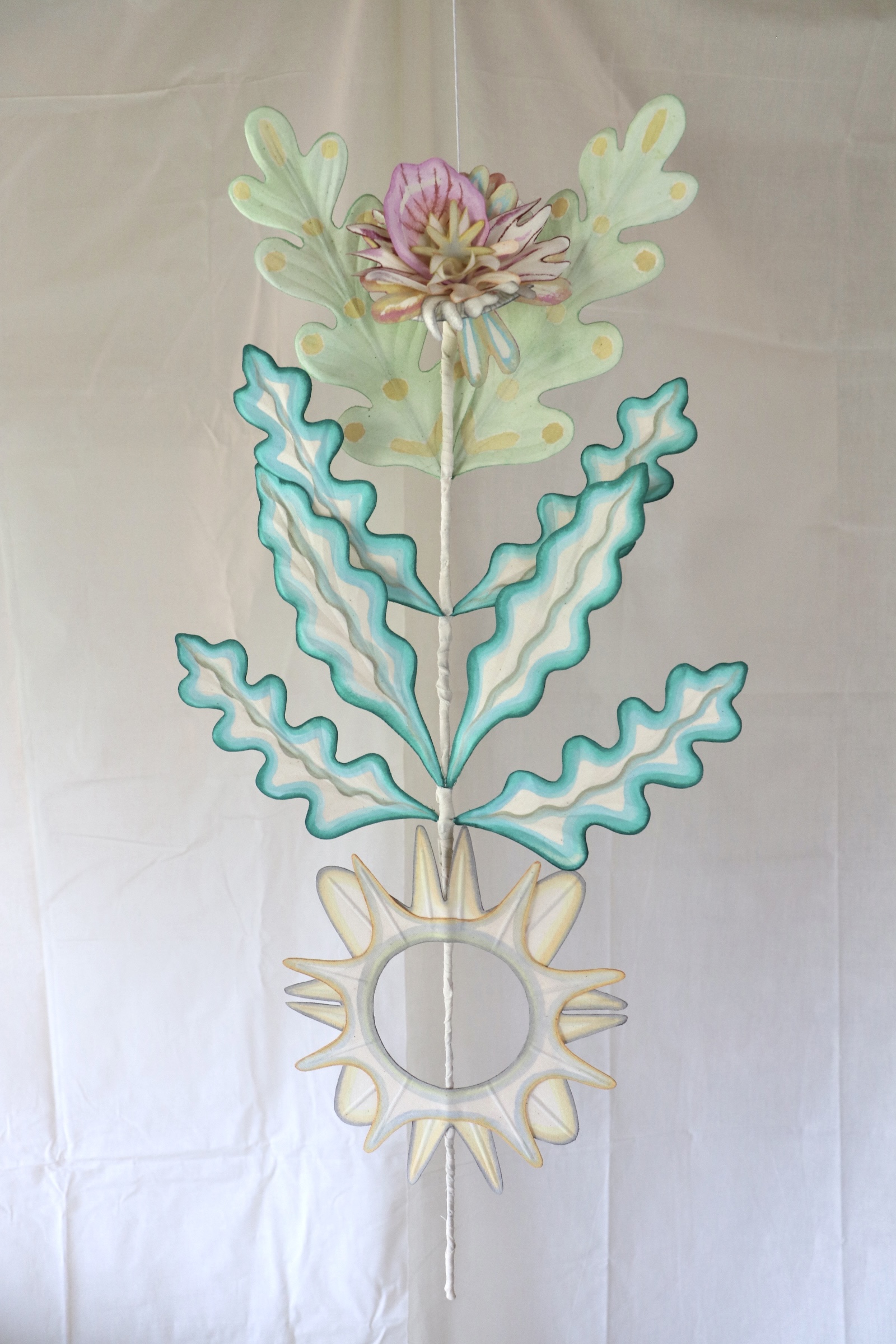 Mona Sugata 出生於1983年日本東京,2009年自多摩美術大學美術與設計學院版畫研究所(版畫專攻)碩士班畢業。她的創作根植於對生命本質的敏銳感知,透過花與葉的組合作為象徵語彙,映照出人、植物、昆蟲與萬物共享的生命流動的連續性。她不以明確語彙去說明彼此的關係,而是建構一個場域,讓觀者在那些尚未被命名的存在間停留、感受那潛藏的生命深度。當人在這樣的寂靜中開始覺察自身存在時,作品將成為媒介,使她得以體會與世界相連的真實喜悅。