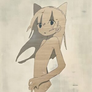今回の作品2点はどちらも木製パネルにそのまま描画し、木目・素材を感じてもらえるように意識して制作しています。