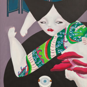 除了有強烈視覺衝擊的影像作品,最新的繪畫系列反應了她目前的刺青師身份,「畫皮」一直是一種加強力量,甚至是「轉換」的手法和意涵。畫面中的女孩/男孩叼著煙,長著動物的耳朵和軀幹,不只是一種人類神化的象徵,如人面獅身像即是一例,李詩儀自我圓滿的追求可以在她的作品中看出究竟。