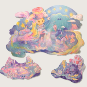平面:水彩、彩色墨水、壓克力顏料及數位繪畫等複合媒材。