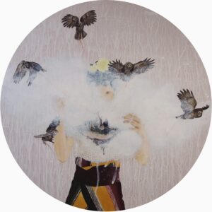 楊依香在歸屬於自我的靜謐世界裡,創造著自己所愛的時光,悉心捕捉著人造世界與情感波動交織的景象。異度的蒙太奇空間,瀰漫一股迷濛遙遠的霧氣,像是在虛空中凝結的歲月標本,畫面中的顏料宛如一縷覆蓋於描繪物事之上的輕紗,掩映滑行,並疊合了過往與未來,想像與真實。藝術家在戲劇性的空間調度中,開展對於日常感受的挑戰,記錄稍縱即逝的吉光片羽能否留下成為記憶而保存。