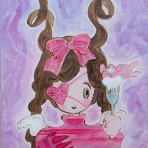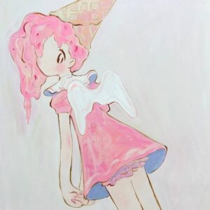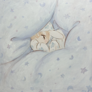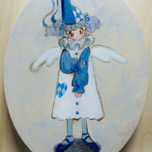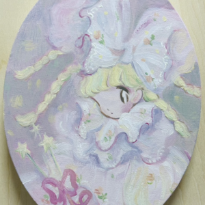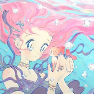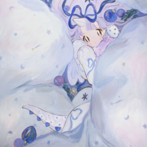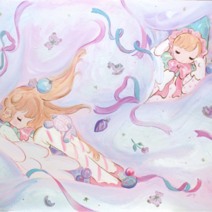 When emotions sway, I often wish I could instantly transform them into poetry. To express the emotions evoked by encounters with beauty and colors, the profound impact of light and fragrance, and the joys and sorrows within my heart. Instead of using poetry, I have chosen painting as a substitute for abstraction, reconfiguring them on the canvas and interpreting them through the embodiment closest to my own spirit, the figure of a “girl.” In my paintings, the concepts of “individuality” and “human physicality” are not important; they are all fictional figures. They take the form of fairies made of sugar and wax, unicorns with patterns, and angels wearing triangular hats. They emerge in a fantastical imagery, without names or connections, lacking individuality.