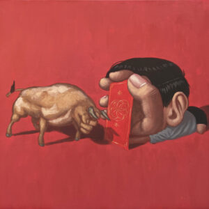 In Blic’s works, human hands has always been the core element of his paintings, directly replacing the faces of the characters in his paintings. Human emotional expressions are no longer limited to the face, but through the extension and bending of the hands, and the interaction with others which graft the functions of conveying emotions and transferring images. They formed a sense of haziness that is beyond expression. It also highlighted the interests of the elements, and cleverly combining the human bodies with organs. The places in his works are often arranged in public daily street scenes or daily necessities, allowing the meaning of the works jump into a deeper surreal meaning.