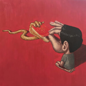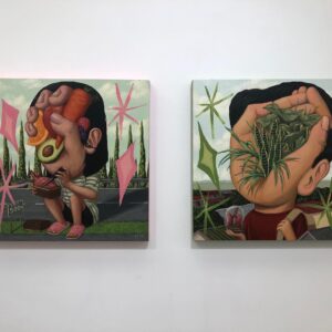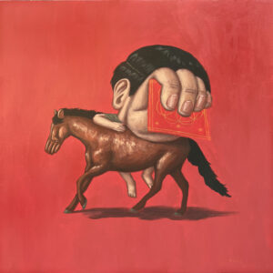 In Blic’s works, human hands has always been the core element of his paintings, directly replacing the faces of the characters in his paintings. Human emotional expressions are no longer limited to the face, but through the extension and bending of the hands, and the interaction with others which graft the functions of conveying emotions and transferring images. They formed a sense of haziness that is beyond expression. It also highlighted the interests of the elements, and cleverly combining the human bodies with organs. The places in his works are often arranged in public daily street scenes or daily necessities, allowing the meaning of the works jump into a deeper surreal meaning.