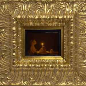 The composition of the painting, with candlelight and shadow as the main elements, was inspired by the religious paintings by candlelight of the 17th century French Baroque painter “Georges de la Tour”.