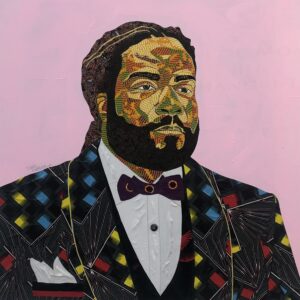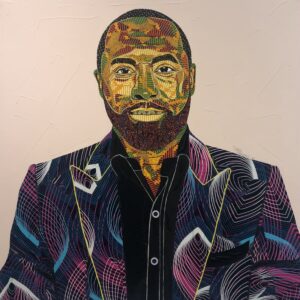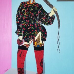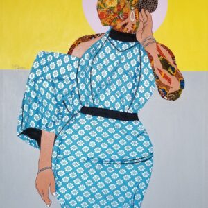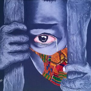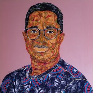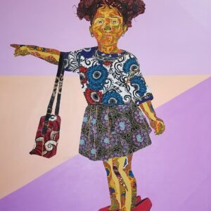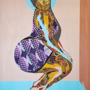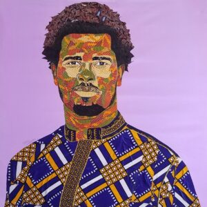 Working with fabrics and Acrylics on canvas, he spontaneously unravels the beautiful layers of Ghanaian kente wax prints and fabrics in a Predetermined experiment, not only to create Art but to birth images, portraits and figuratives that communicates to observers, captivates the soul, appealing to the eyes and stimulates the mind.