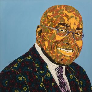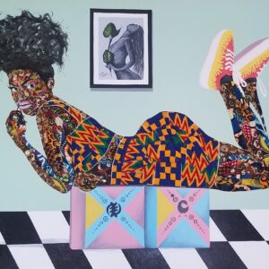 The wax prints and Kente he uses in his works symbolizes “Royalty, a symbol of national Pride & Black Identity”, not only for Ghanaians but also ties a bond and highlights the connection to Africans in the Diaspora.