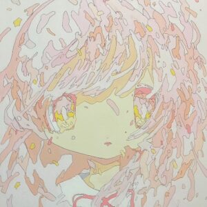 出生在京都。畢業於武藏野美術大學油畫系。大約從2016年起,她開始用丙烯顏料和筆畫一個反覆崩潰和形成的女孩。用丙烯顏料和鋼筆劃了一個反復倒塌和成形的女孩。以 「崩壞 」和 「生成 」為創作的核心概念,利用精細的筆觸描繪出臉部造型崩裂的女孩,製造出唯美與崩壞的衝突感。在視覺上,引導觀賞者不自覺地往畫面深處去觀察那些崩壞的細節。