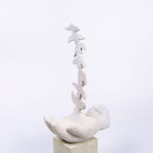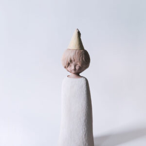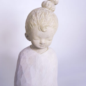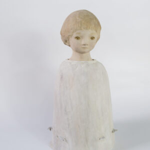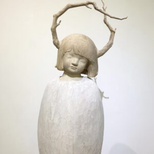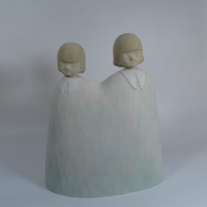 顏安出生於1990年,就讀於彰化師範大學美術系碩士。顏安其創作常來自生活裡的無名之感,難以言喻的感受在腦海中化為一個個孩子形像,顏安試著用木媒材裝盛他們,刷上記憶裡淡淡的色彩,迎接他們到來。初見顏安時,發現這一個深居在彰化鄉間三合院的年輕藝術家清瑩秀澈,不帶平常看到的急躁火氣。對於自己創作的節奏步調,顏安也是屬於慢磨到作品都成精的地步才會讓他們脫離,不慌不忙。看到她這幾年完整的創作軌跡,我們決定合作的第一個展覽定在香港,帶《那之間其一》和《那之間其二》去香港的理由是希望可以讓城市節奏極快的人們看到屬於臺灣特有的內斂,溫潤和自在。