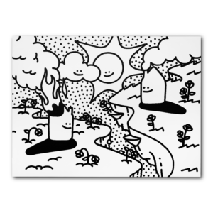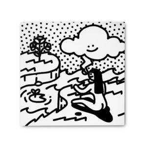 建築背景的Yok擅長以清晰的線條與簡約的幾何圖形搭配上插畫感十足的畫面處理風格—-在他有別以往傳統的繪畫語彙下,觀者能夠直接面對畫作本身而非游離於繁雜華麗的學術評析;卡漫風的太陽與雲朵、擁有人類表情卻似狗的奇幻生物以及身體律動感豐富的裸女,他將日常生活更加單純明朗化,好似不服膺於社會上的俗世重擔,在活潑充溢著童趣的作品底下有著某種超脫凡俗卻純粹為我之感,如若凱斯哈林曾說過:「藝術為眾人而存在,藝術是生活,生活即是藝術。」
