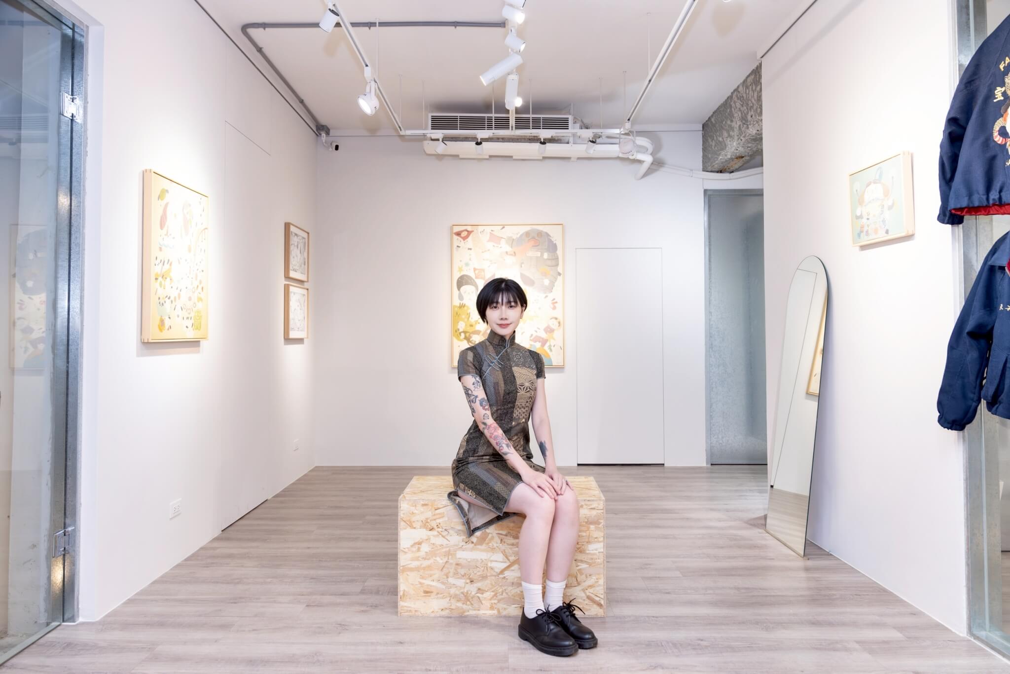 訪談當天,Fanko 身穿旗袍、留著一頭俐落短髮,外表帶有一絲酷感;一聊天才發現,她其實內心活潑、溫暖,跟作品一樣散發著正向與充滿活力的個性。她喜歡把壓克力的厚實色塊、油蠟筆的粗獷筆觸和鉛筆的細線混在一起;抑或是將攝影和塗鴉交叉疊加,讓畫面在真實與想像之間自如切換。